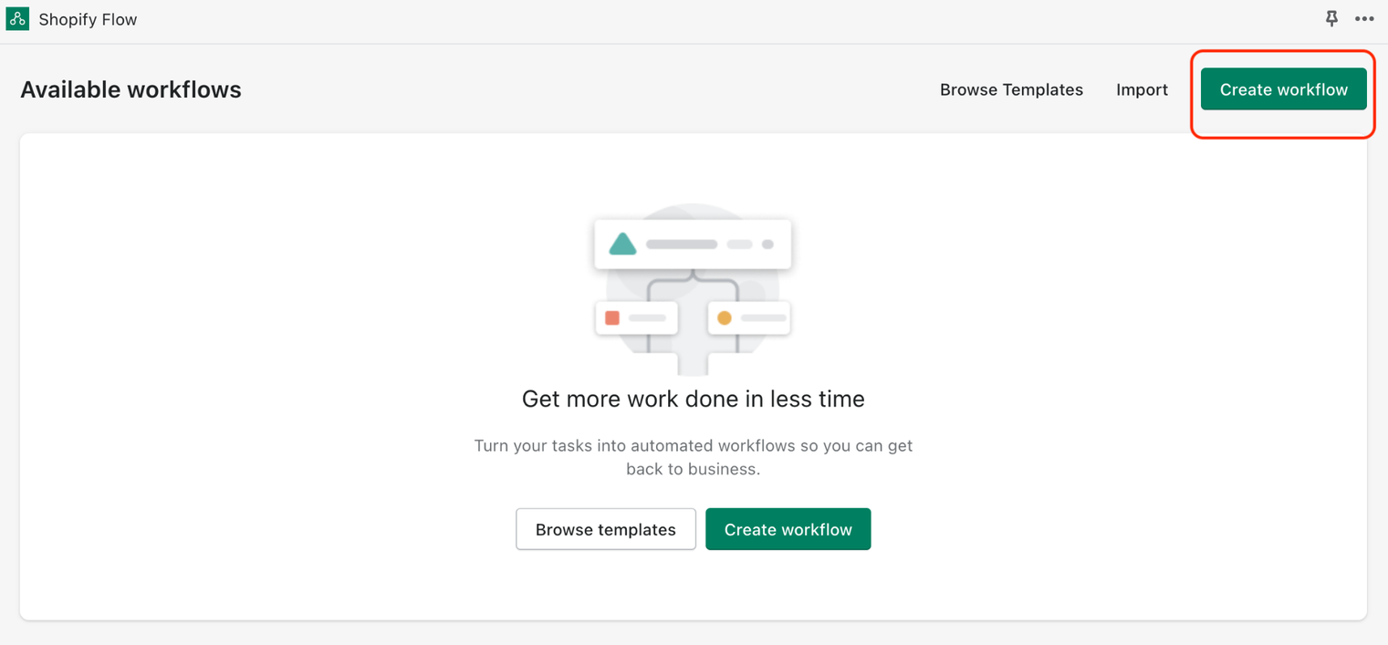 Μπορείτε να δείτε την εφαρμογή του Shopify Flow πατώντας το Apps κάτω από το Sales Channels στο μενού αριστερά. Πατώντας το κουμπί Create workflow, μπορείτε να ξεκινήσετε να φτιάχνετε ένα καινούριο workflow.