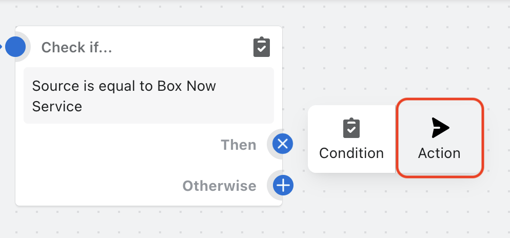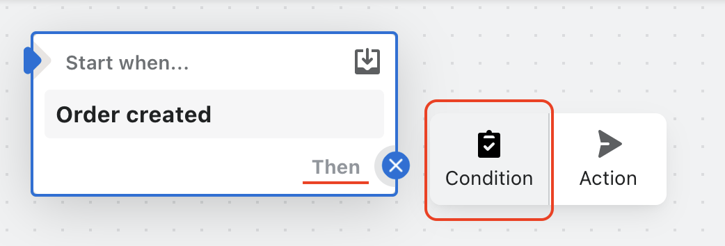 Πατήστε πάνω στο κουμπί Select a trigger και ξεκινήστε φτιάχνοντας την συνθήκη που θα ξεκινάει το workflow μας. Στην συγκεκριμένη περίπτωση, θέλουμε με το που δημιουργηθεί μια παραγγελία, να ελέγχεται αν στο checkout επιλέχθηκε locker της BoxNow για παράδοση, και αν αυτό ισχύει, να της βάζει ένα order tag “box-now” στο διαχειριστικό σας.