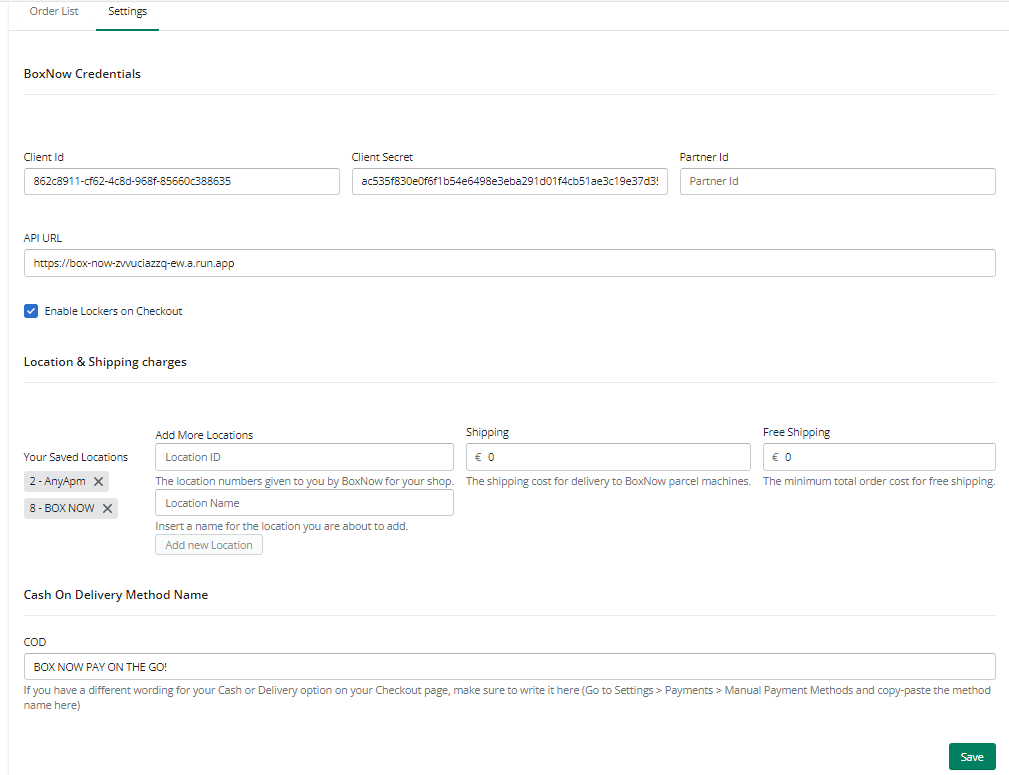 Enable Lockers on Checkout: Τσεκάροντας αυτό το πεδίο εμφανίζεται η υπηρεσία στο checkout του site.