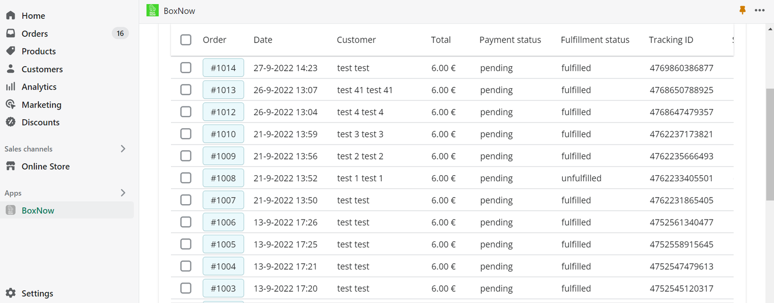 Πατώντας την επιλογή BoxNow εμφανίζονται συνολικά οι παραγγελίες του e-shop. Για να εμφανιστούν μόνο αυτές της BOX NOW θα χρειαστεί να προσθέσουμε το φίλτρο της Box Now. Αυτό θα γίνει μέσω του app SHOPIFY FLOW.