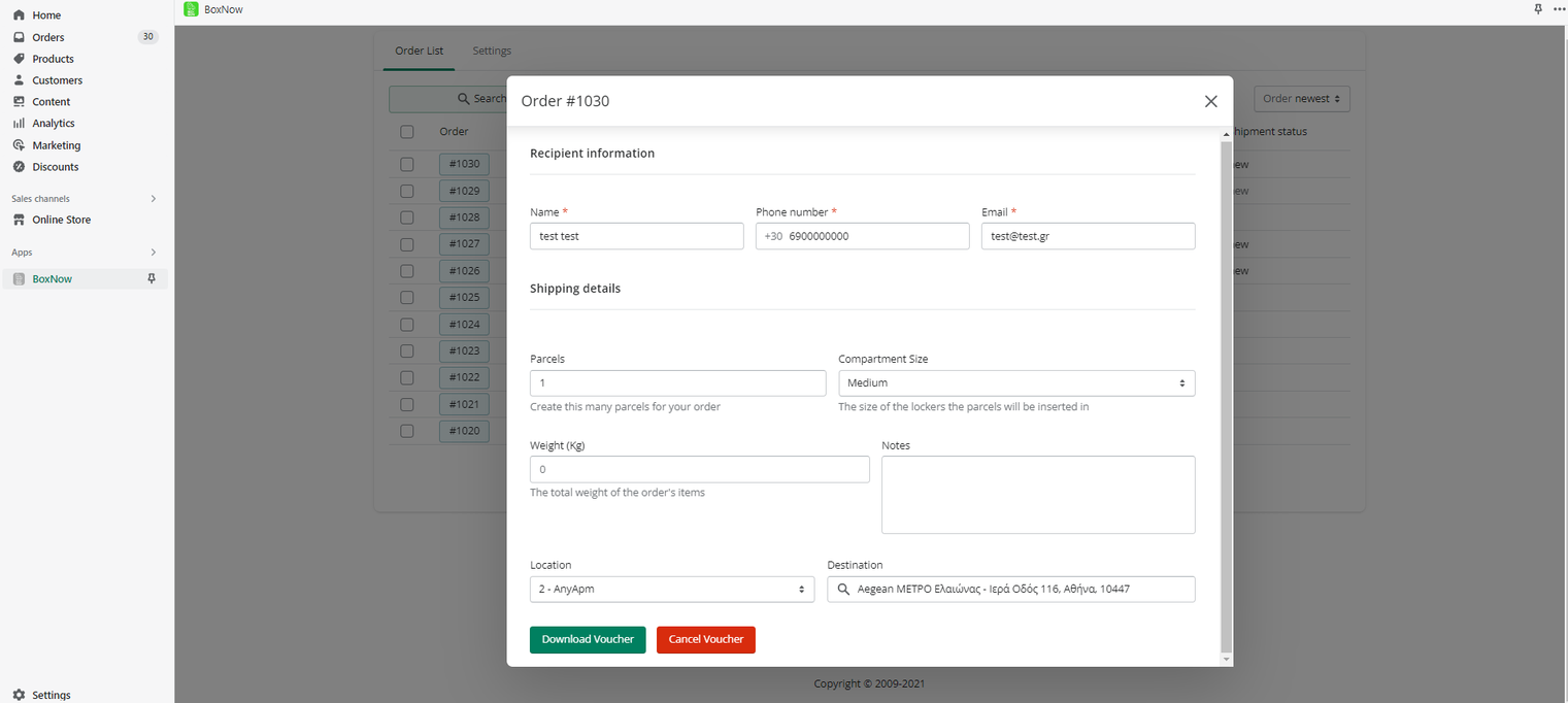 Για τη δημιουργία μεμονωμένων vouchers επιλέγουμε μια παραγγελία την ανοίγουμε και επιλέγουμε Create Voucher και στη συνέχεια Download Voucher.